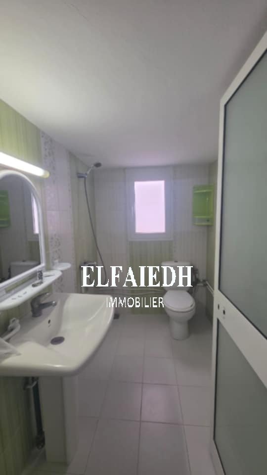 A louer à l’année chez l’agence " Family immobilier el faiedh' , un bel appartement S+3 sis au 1er étage bien situé au Hammamet-centre.