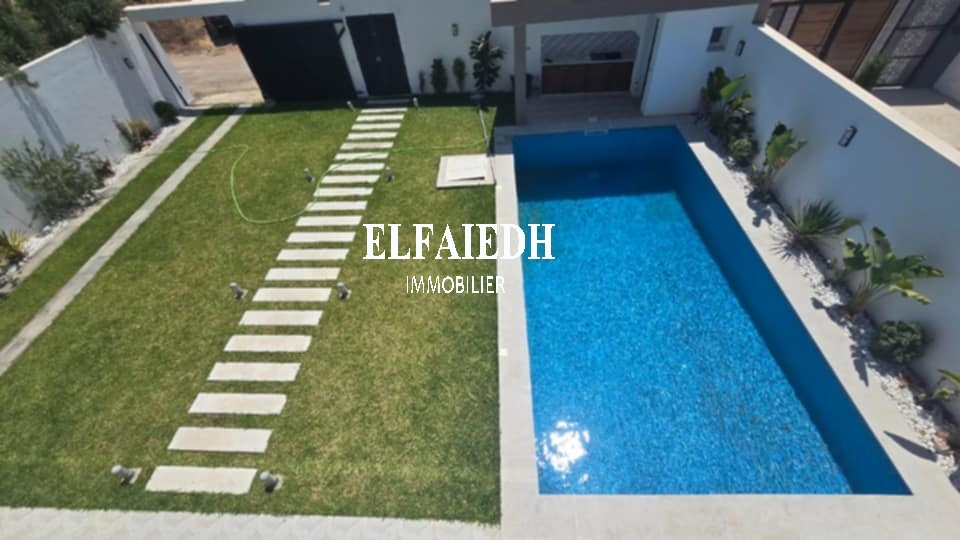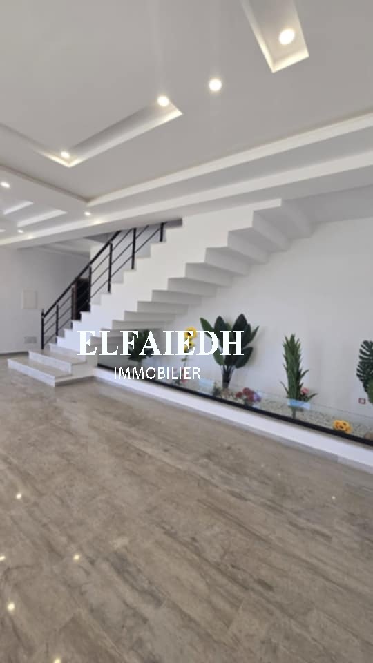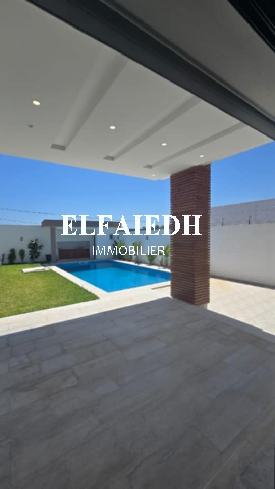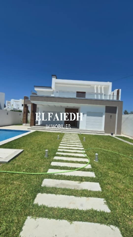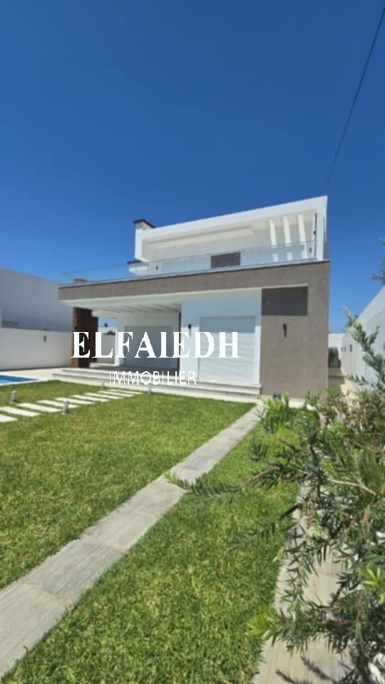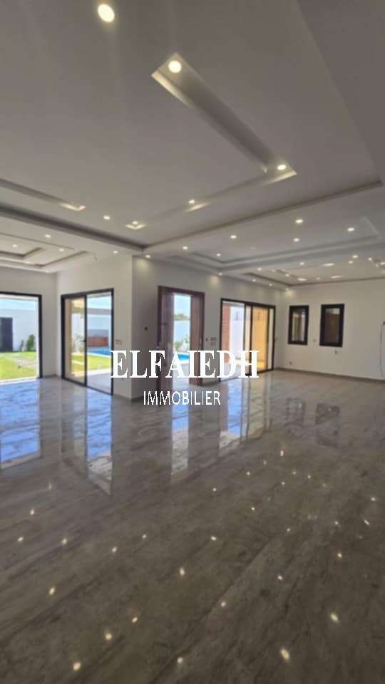 A vendre chez l’agence “ Family immobilier El faieh”, une luxueuse villa S+4 de très haut standing nouvellement construite bien située dans un quartier sécurisé à Hammamet Sud zone Sidi Hammed.