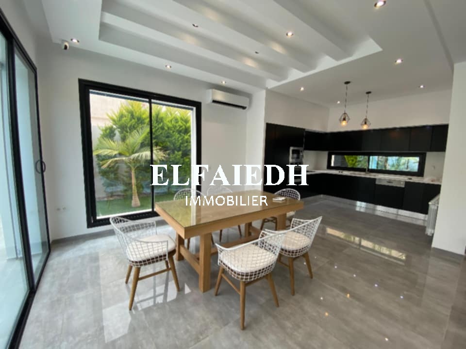 A vendre chez l’agence " Family immobilier el faiedh' , une magnifique villa de très haut standing nouvellement construite située dans un quartier calme et bien sécurisé à Yasmine-Hammamet