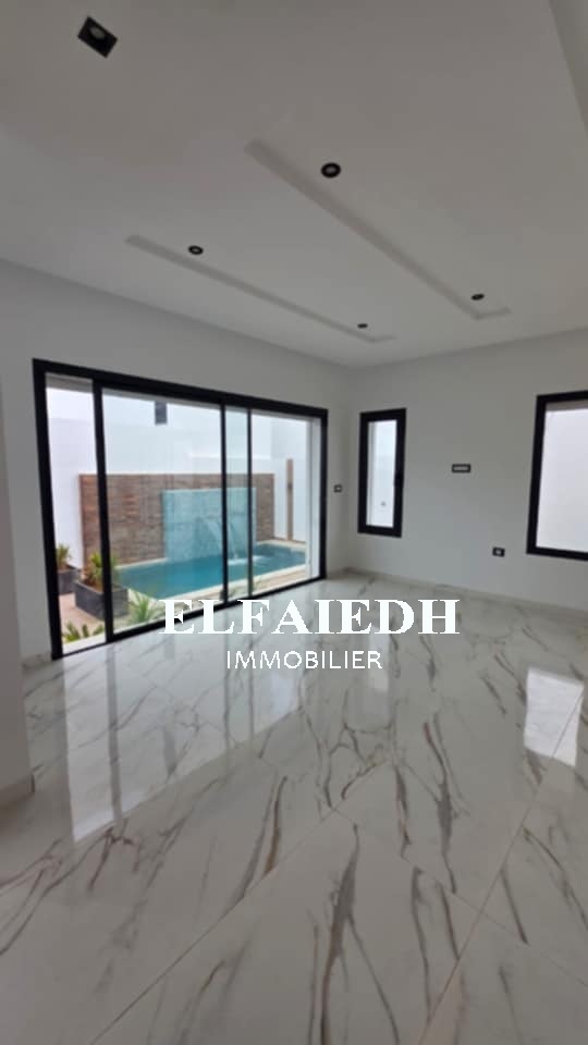 A vendre chez l’agence “ Family Immobilier El faiedh” , une magnifique villa S+3 nouvellement construite avec des matériaux noble bien située à Hammamet-Nord zone hotel la Badira .