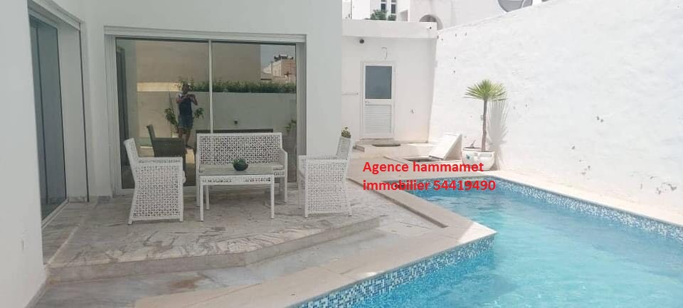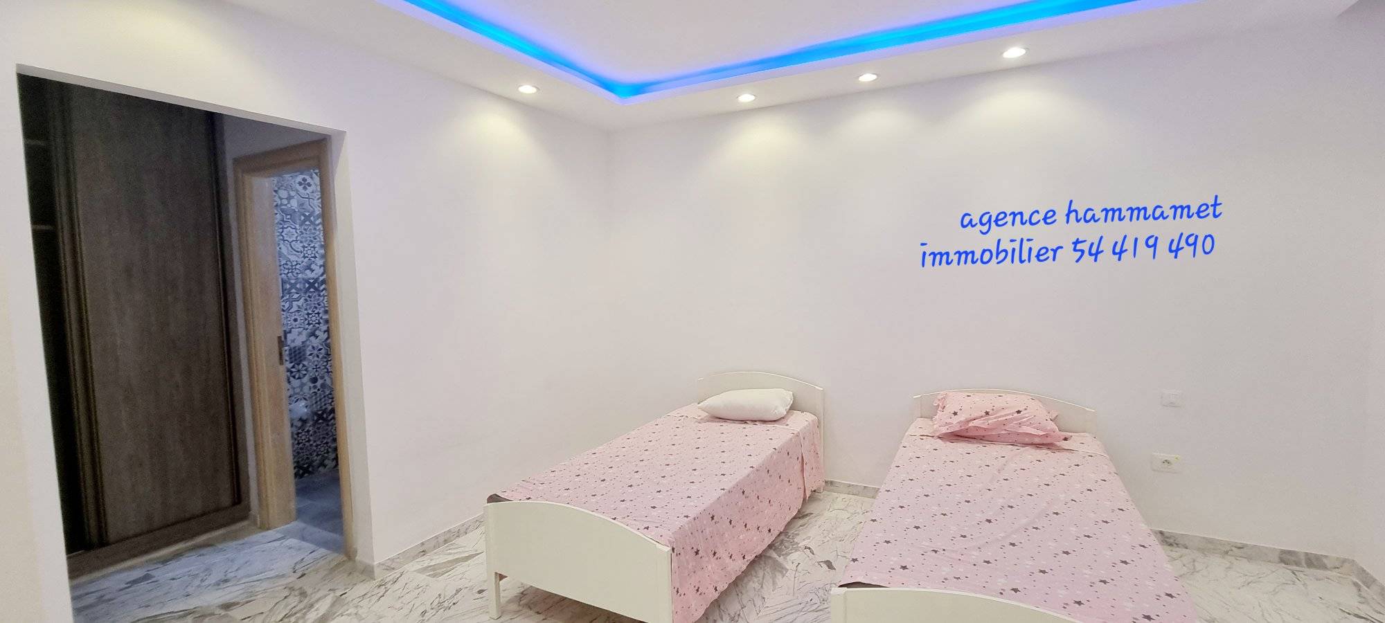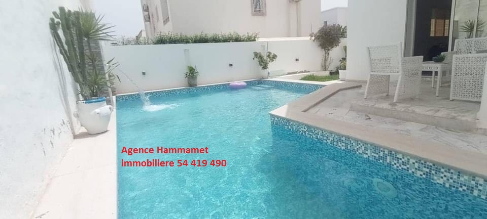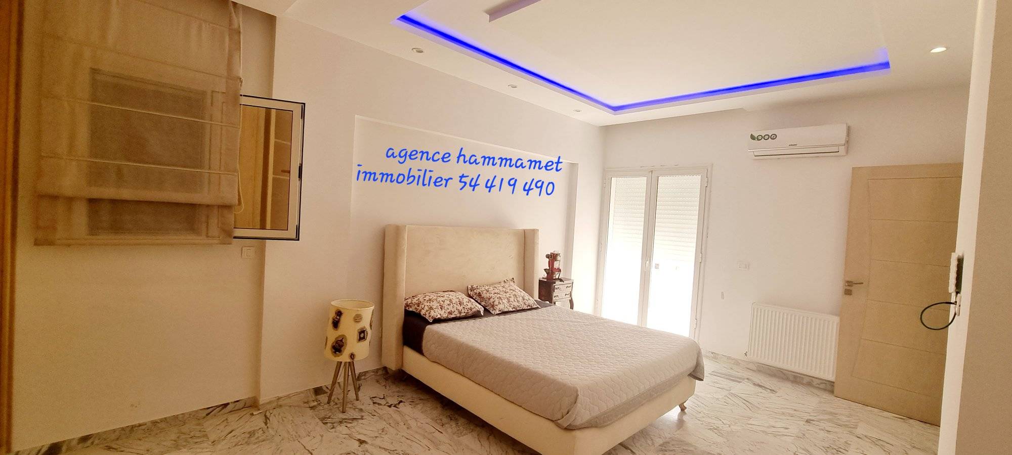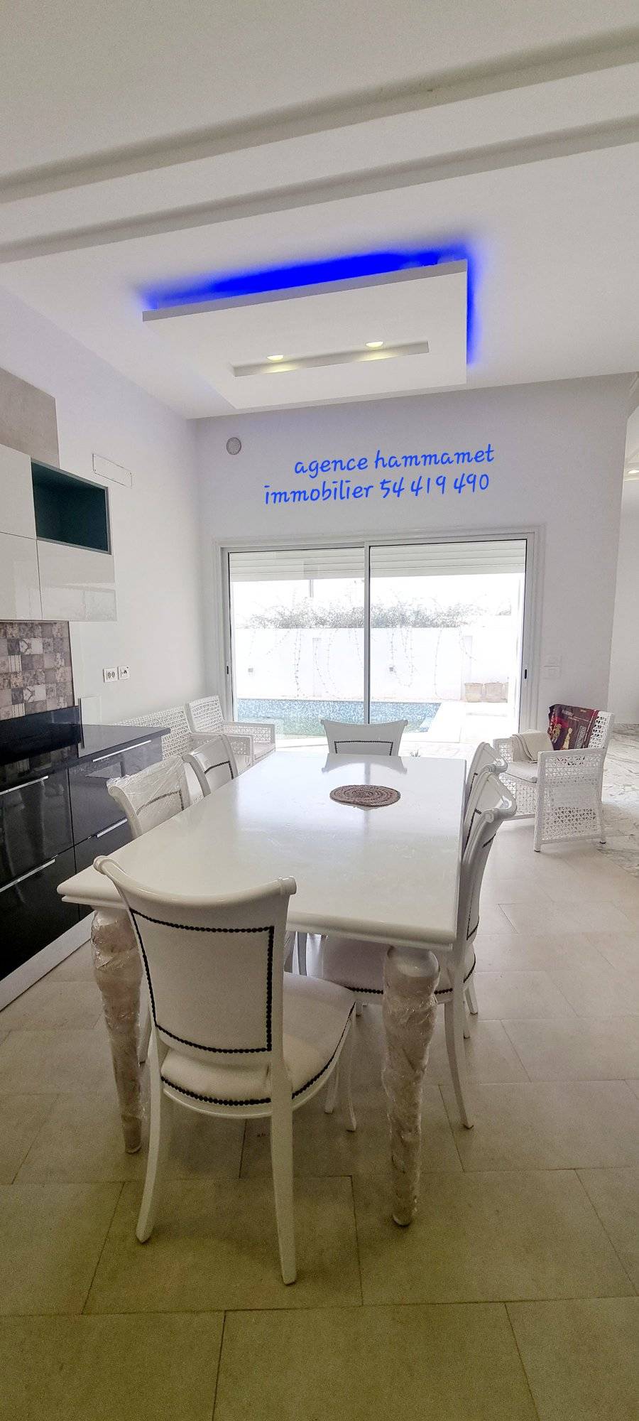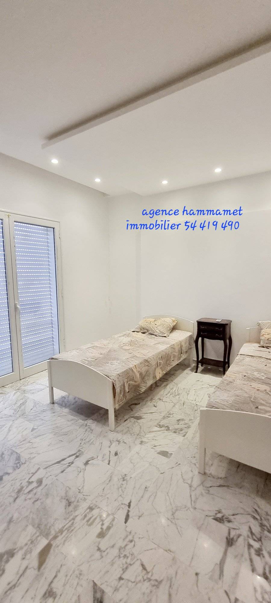A vendre chez l’agence “ Family immobilier el faidh” , une merveilleuse villa S+4 située dans un quartier chic, calme et bien sécurisé à Hammamet Nord. pas loin d'hôtel Sultan et palm beach .