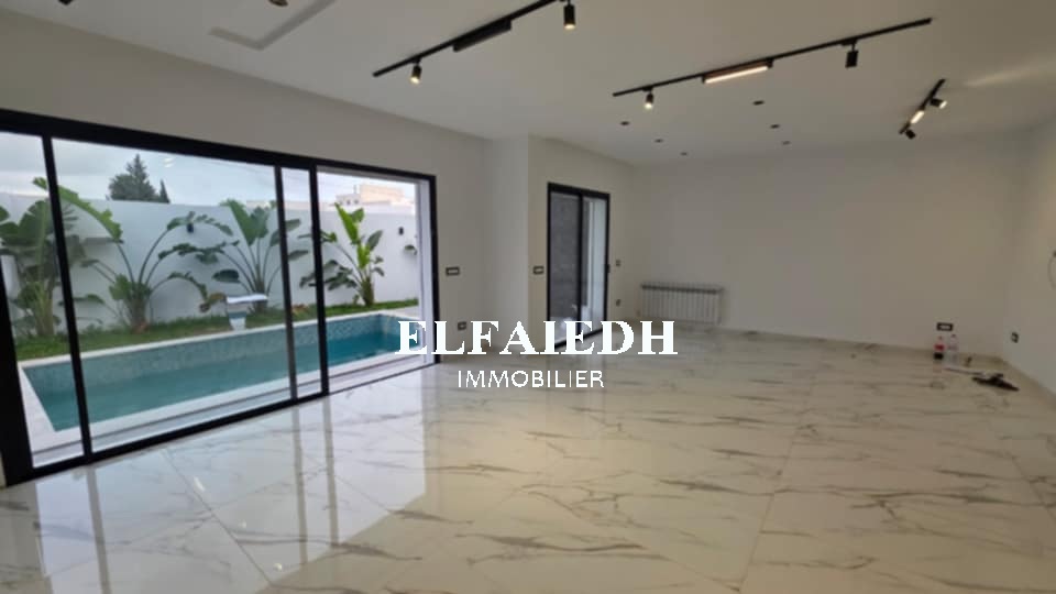 A vendre chez l’agence" Family immobilier El faiedh" , une splendide villa S+4 nouvellement construite, bien située dans un quartier calme à Hammamet-Nord pas loin de la zone touristique et hotel la Badira