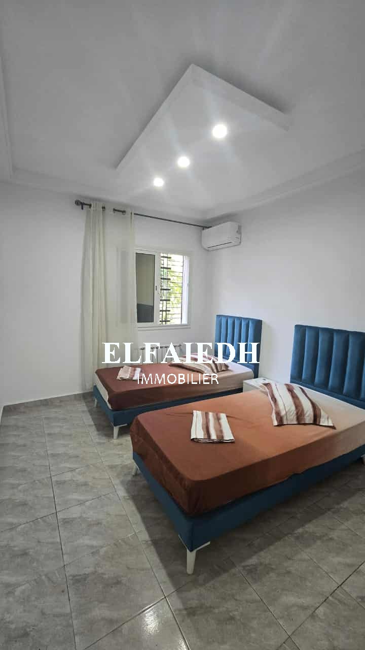 A louer à l’année chez l’agence “ Family immobiler el faiedh” , une coquette villa de plain pied située dans un quartier bien sécurisé à Hammamet centre à quelques minutes d'hotel Sindbed.