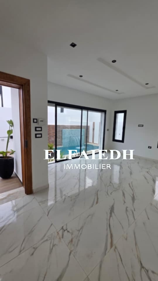 A vendre chez l’agence “ Family Immobilier El faiedh” , une magnifique villa S+3 nouvellement construite avec des matériaux noble bien située à Hammamet-Nord zone hotel la Badira .