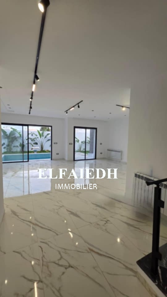 A vendre chez l’agence" Family immobilier El faiedh" , une splendide villa S+4 nouvellement construite, bien située dans un quartier calme à Hammamet-Nord pas loin de la zone touristique et hotel la Badira